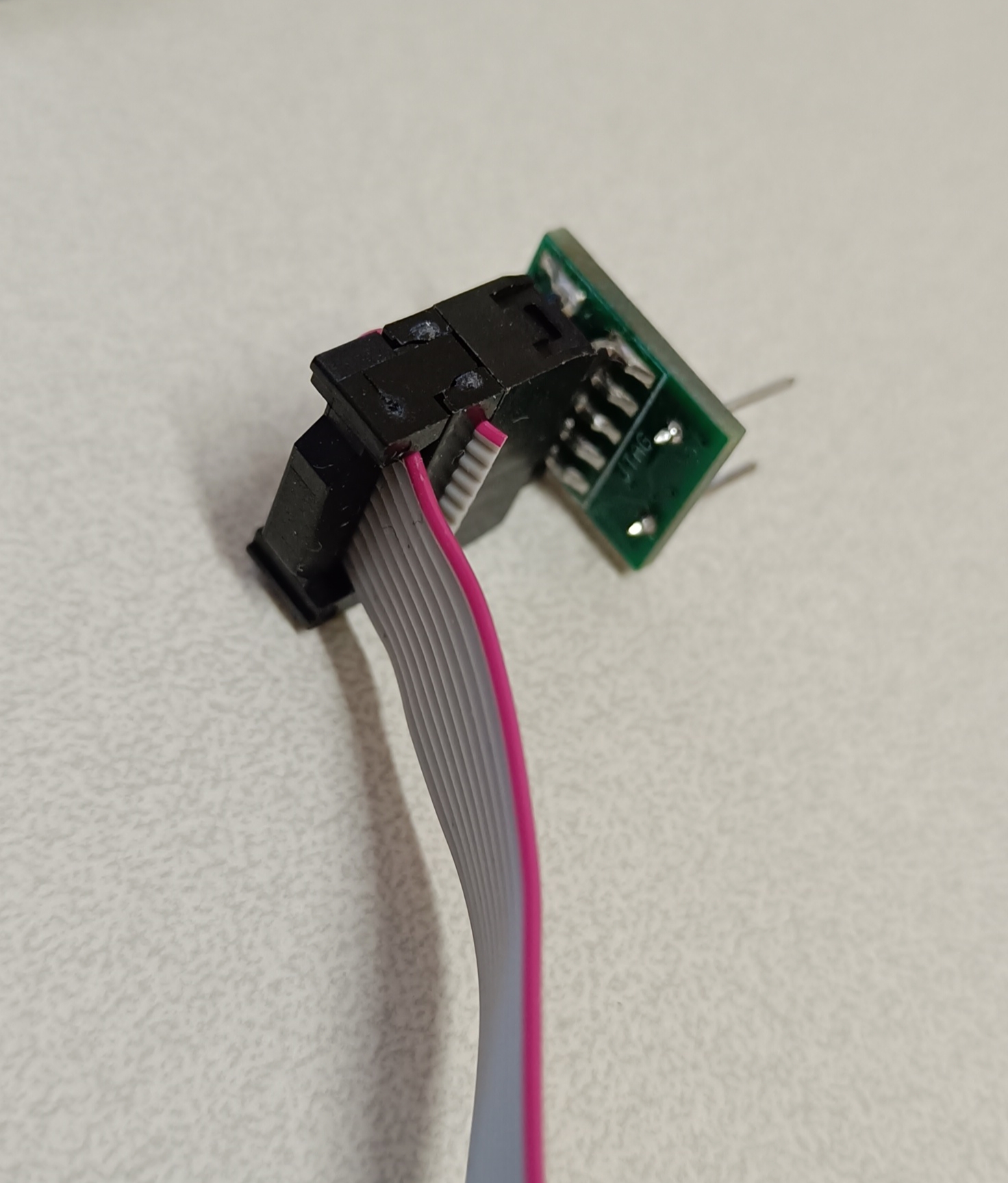 This is the SKUDO JTAG adapter pictures. Connect the Blaster flat wire as per this picture (note the red wire position compared to the JTAG adapter):